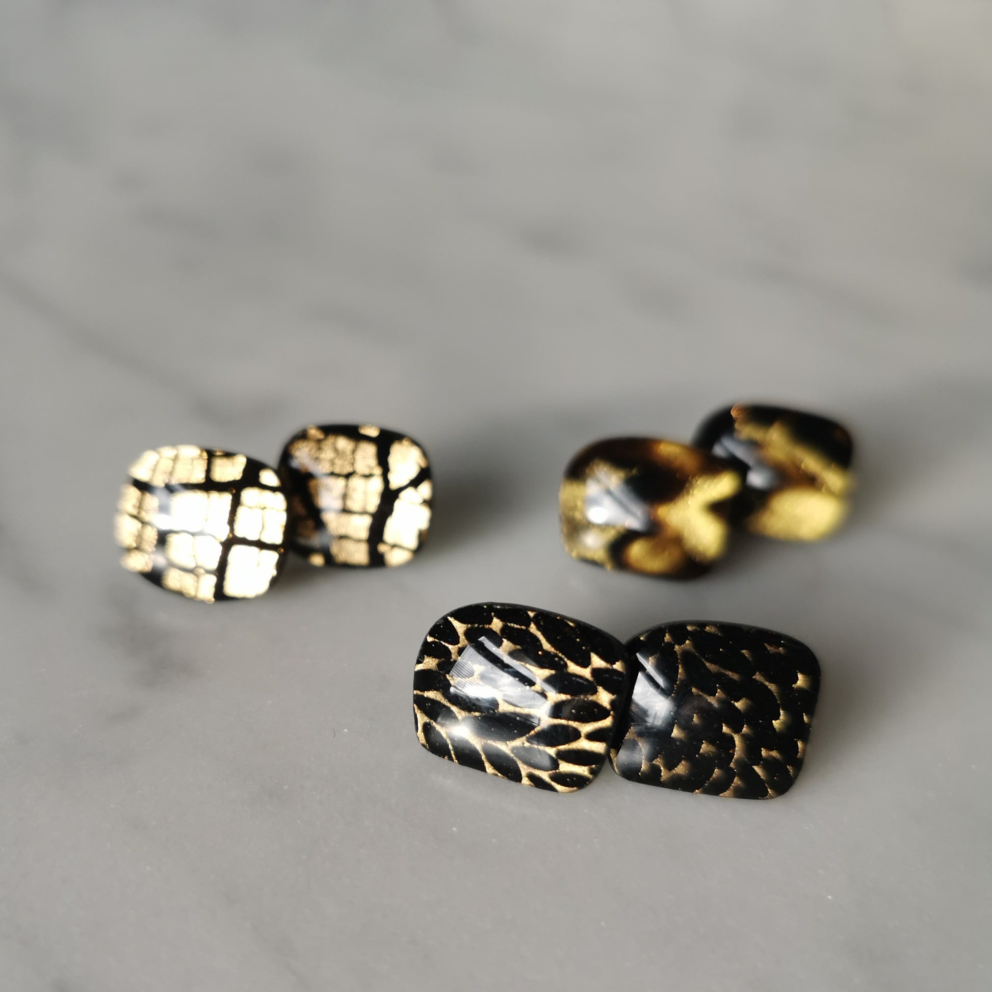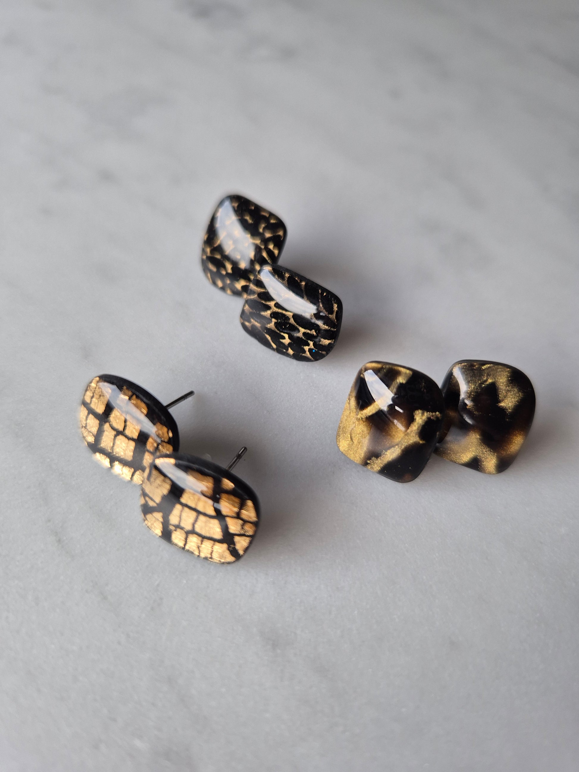 Als je liever een subtiel kleine stud draagt maar wel uniek en handgemaakt. Deze studpack bevat 3 paar kleine studs in zwart en goud tinten, voor de feestelijke momentjes of voor iedere dag.