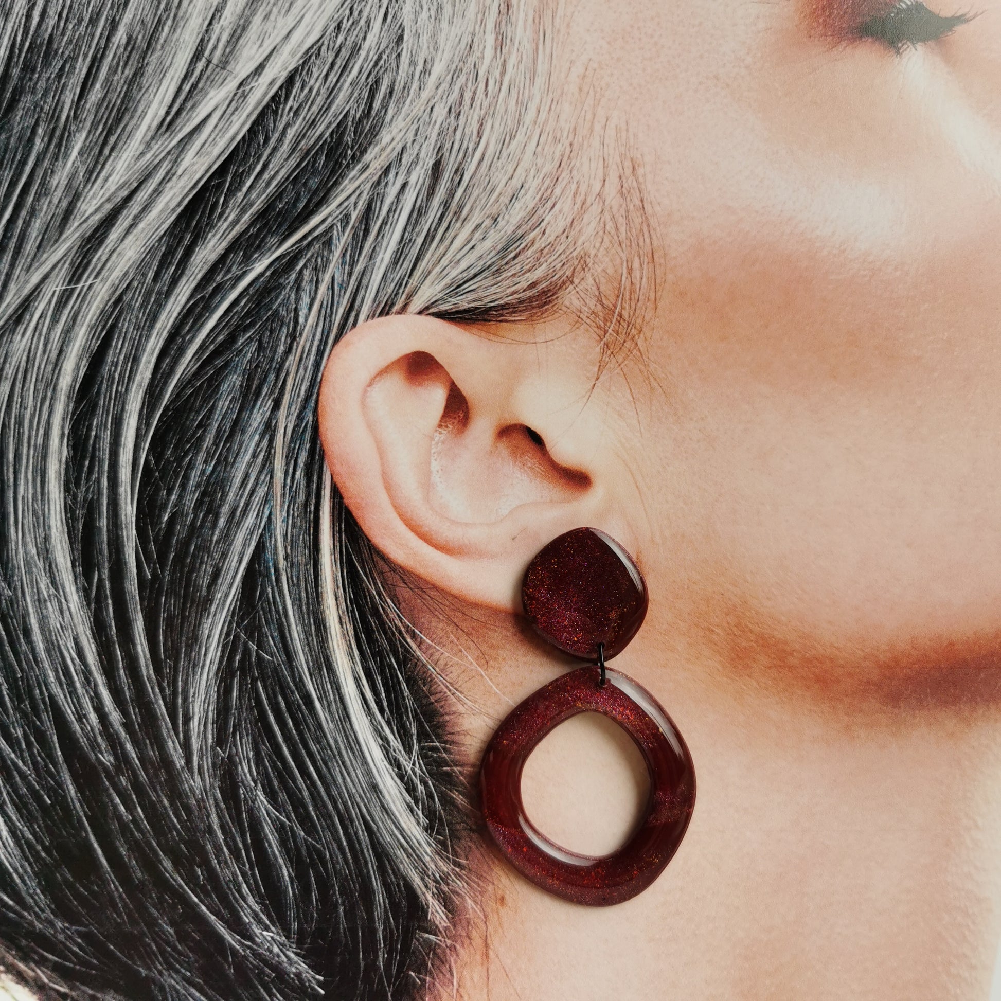 Wijnrode beauties, perfect voor dit seizoen. De mode zegt bordeaux,ik geef je bordeaux met deze vederlichte oorbellen, afgewerkt met een glanslaagje. Er is ook nog een andere,strakkere variant, check deze zeker ook.