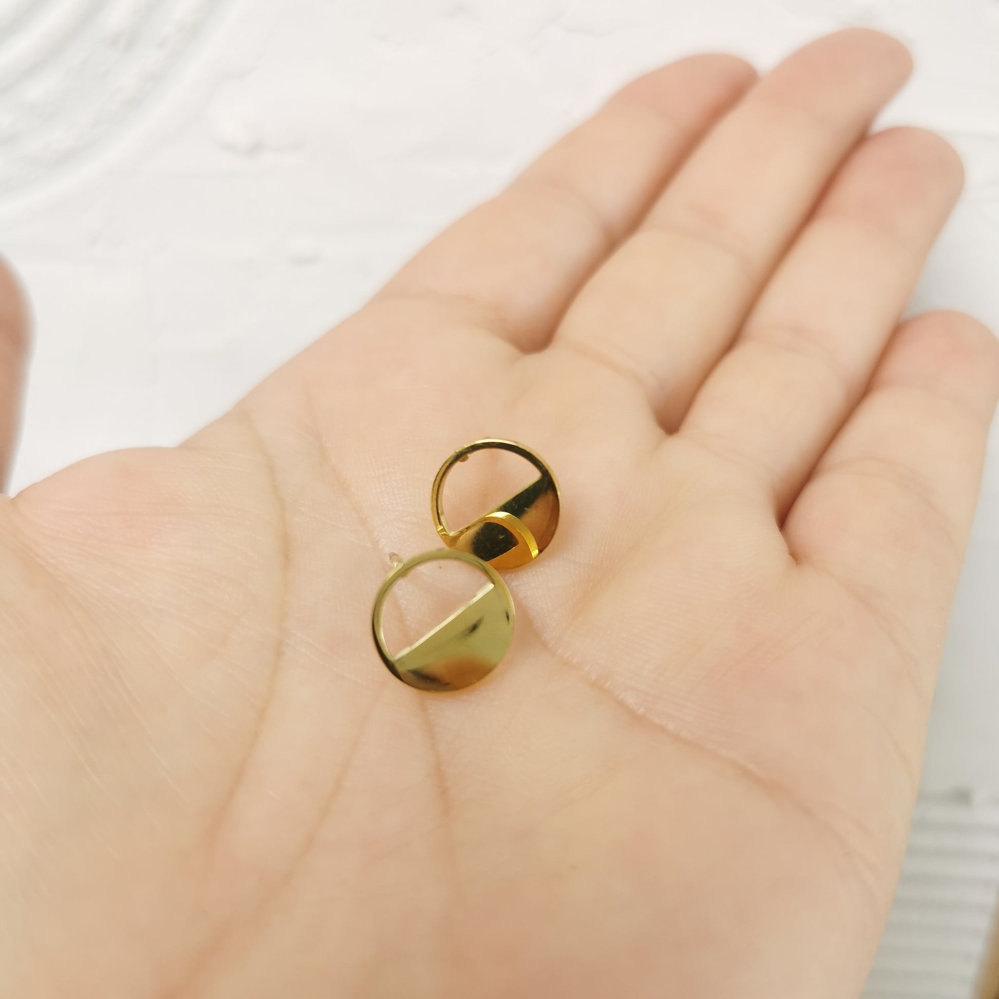 Stainless steel vergulde stud. Hoe mooi! Een gouden stud kan altijd. Deze is erg leuk omdat hij half open is. Glanzende afwerking dus reflecteert heel mooi. Tijdloos!