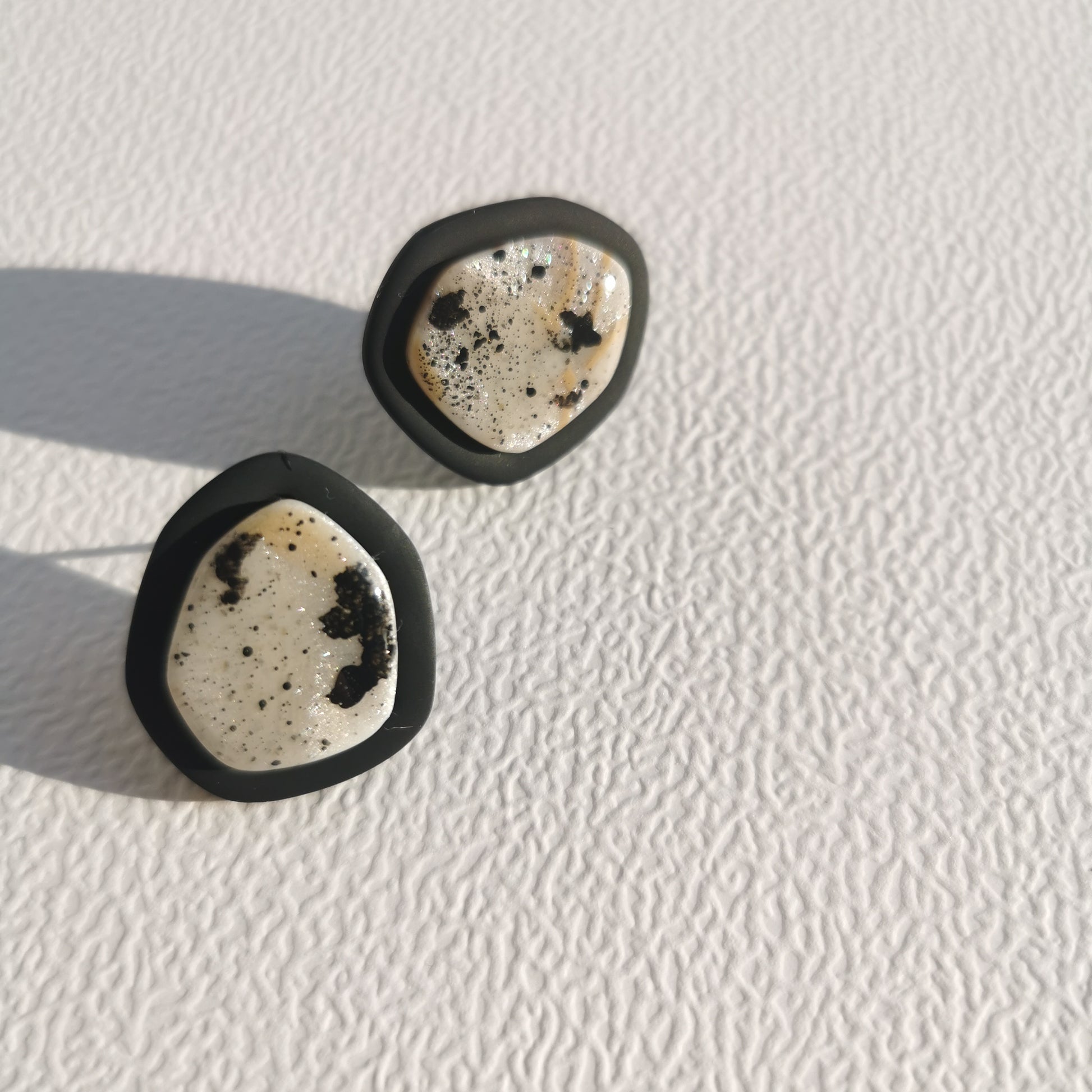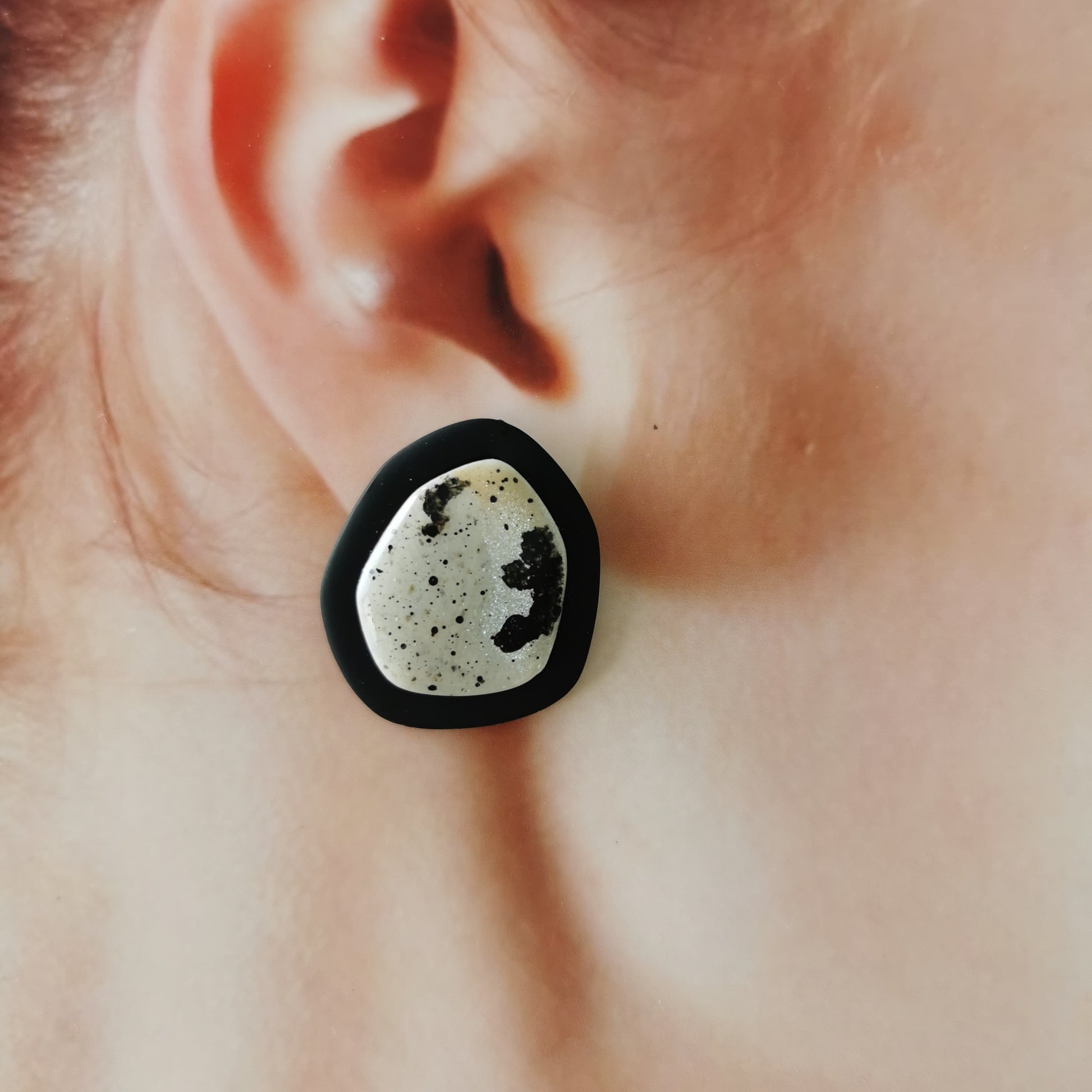 Hele toffe neutrale statement stud oorbel. Niet te groot, superlicht en met een mooie shimmer. Uniek!