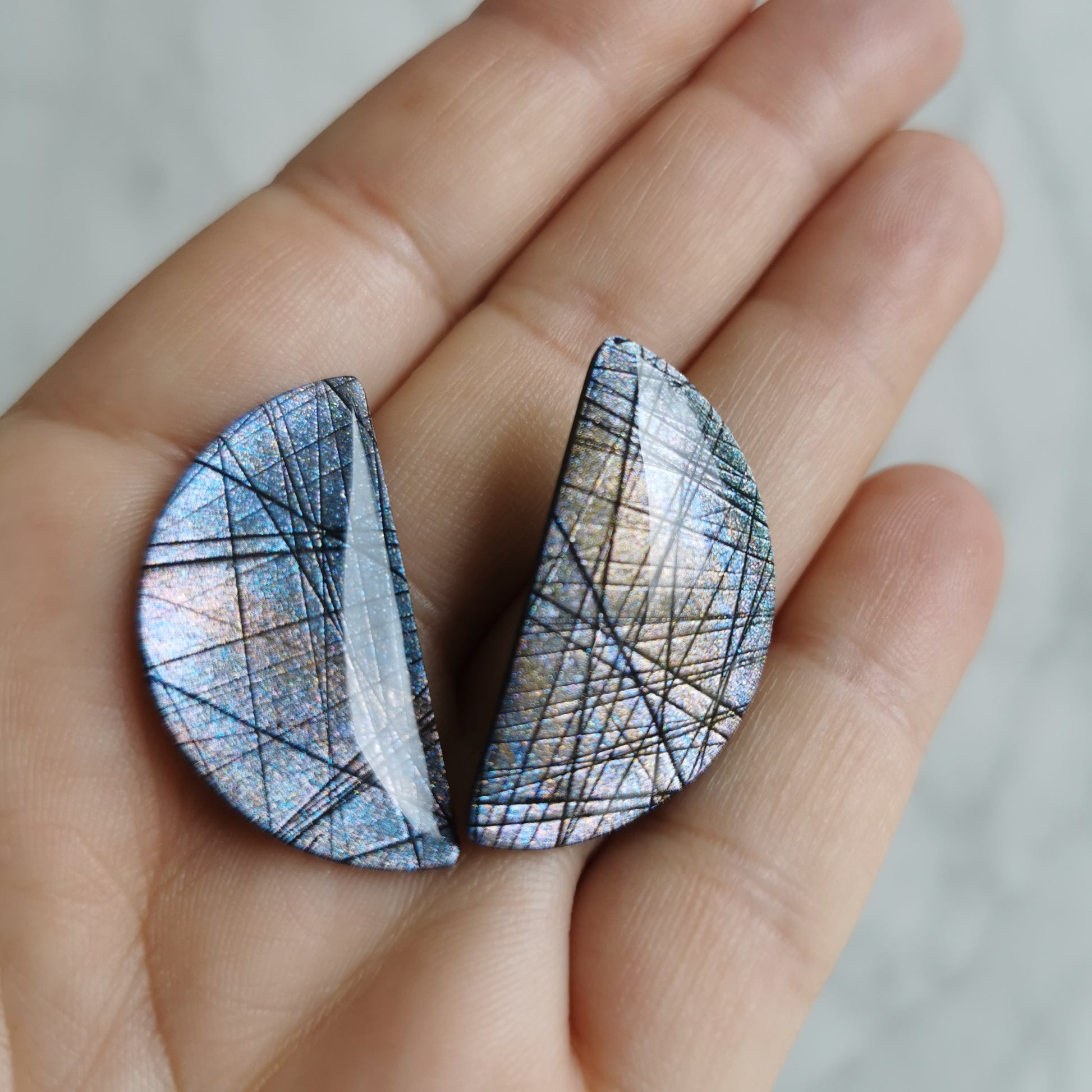 Labrodoriet blijft de mooiste steen die er is voor mij. Deze versie heeft kleurveranderend pigment erin waardoor ze bij verandering van lichtinval andere kleuren gaan weergeven. Prachtig en combineerbaar met alles in je kleerkast.