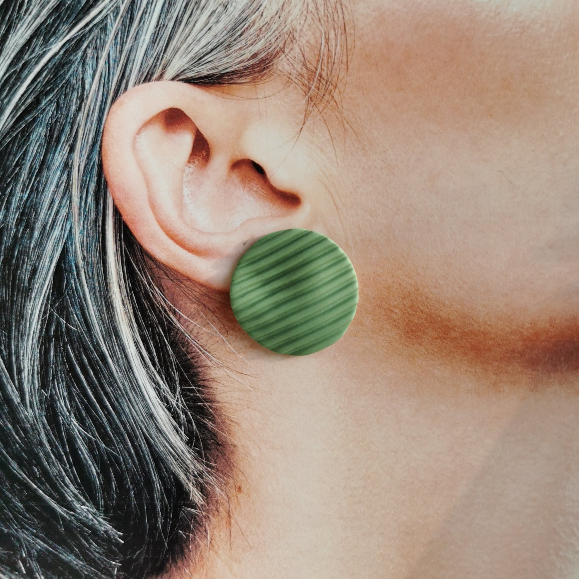 Deze studs zijn mooi in hun eenvoud. Als je houdt van understated statement studs. Dit is de kleinere versie. Met de hand vormgegeven,dus allemaal uniek in vorm. Heel erg draagbaar,super mooi complimentair aan je gelaat. Diameter ongev 3cm