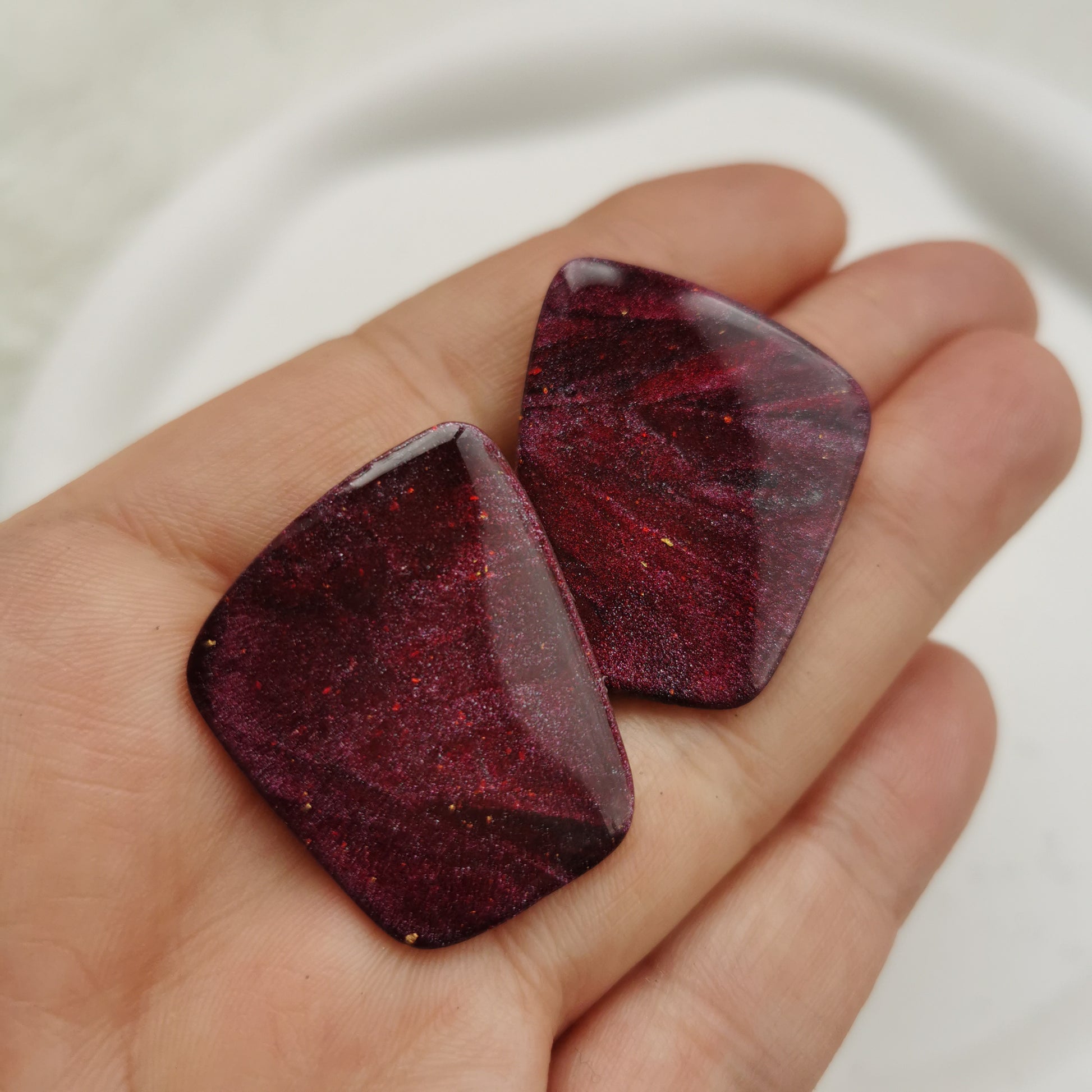 De mooiste dieprode kleur voor deze trapezium maxistuds! Elegante vorm met een zalige parelmoer glans en een minispikkeltje goud.