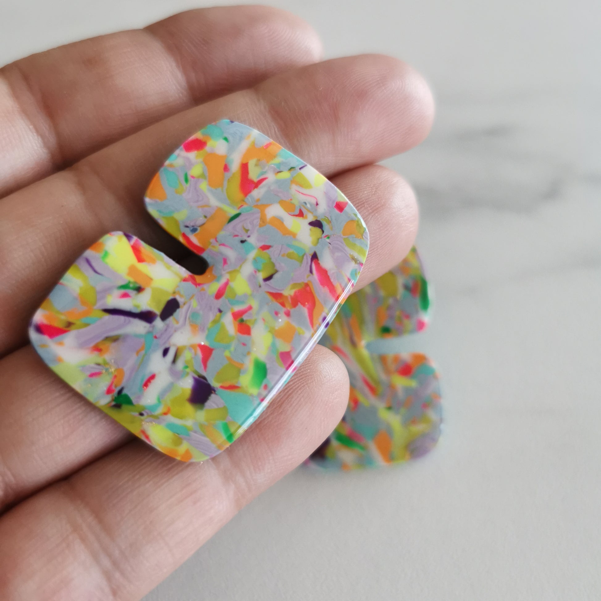 Als je van kleur houdt dan moet je deze gewoon hebben! Ze schreeuwen, zomer,fun,festivals en veel plezier. Afgewerkt met resin en handgesneden vorm.