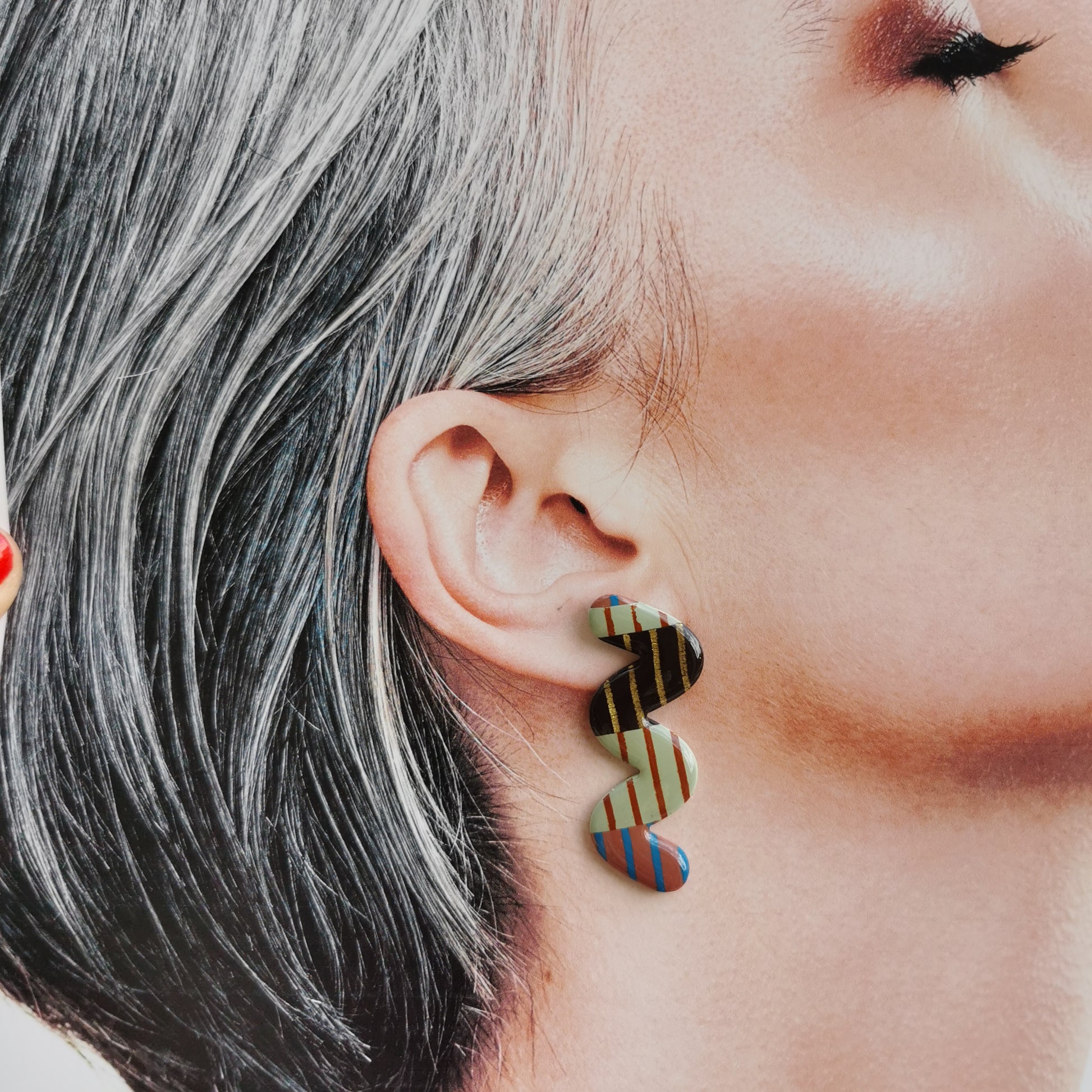 Yay! Ze zijn zalig! Kleine swirly stekertjes die je gewoon vrolijk maken. De mix van kleuren maken ze combineerbaar met je volledige nazomer garderobe! Afgewerkt met resin en stekertjes in stainless steel.