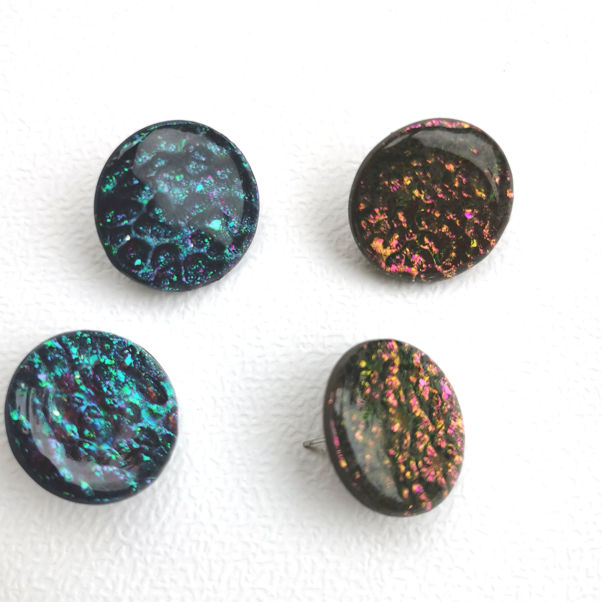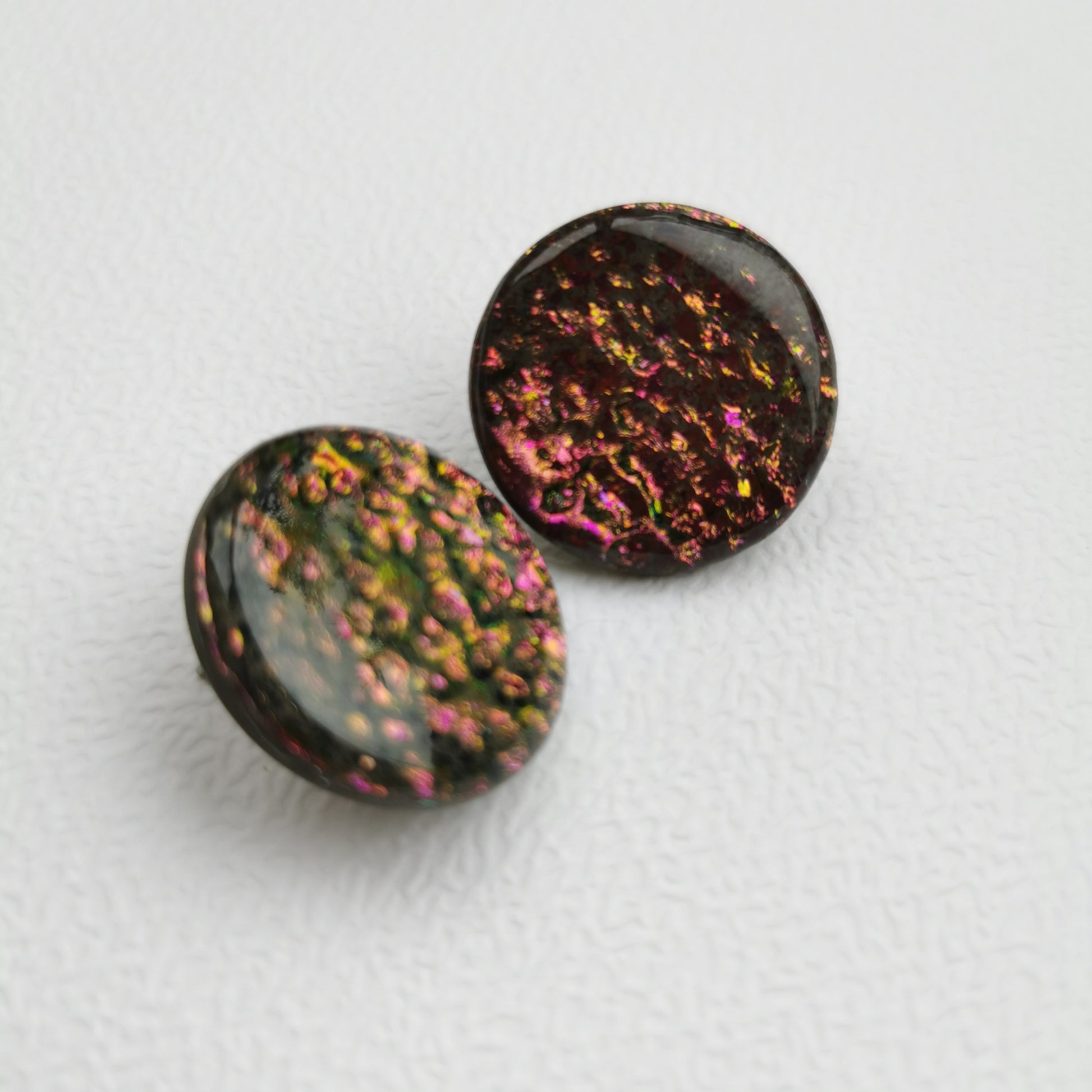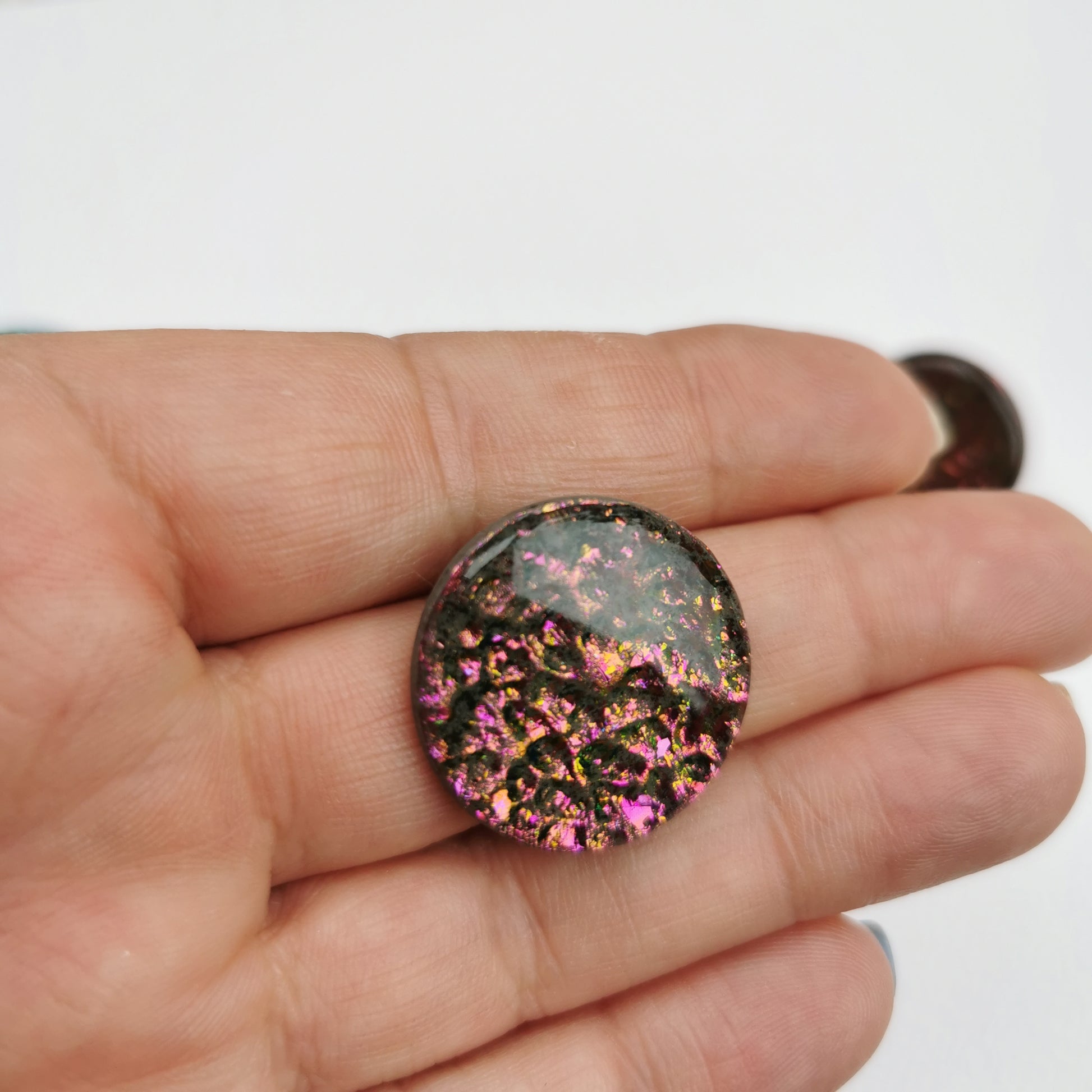 Deze colorshift maxistud is geweldig. De kleuren gaan van roze naar mauve naar groen. De gehamerde textuur zorgt ervoor dat de kleurschakering extra aan het licht komt.