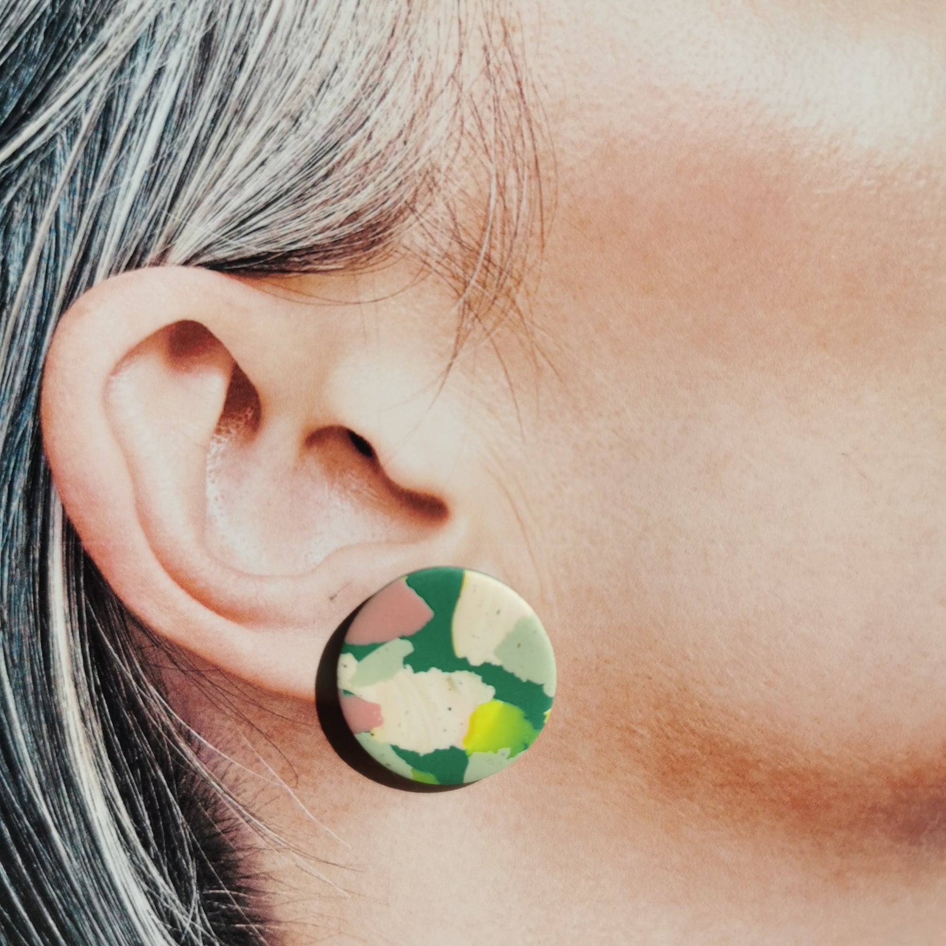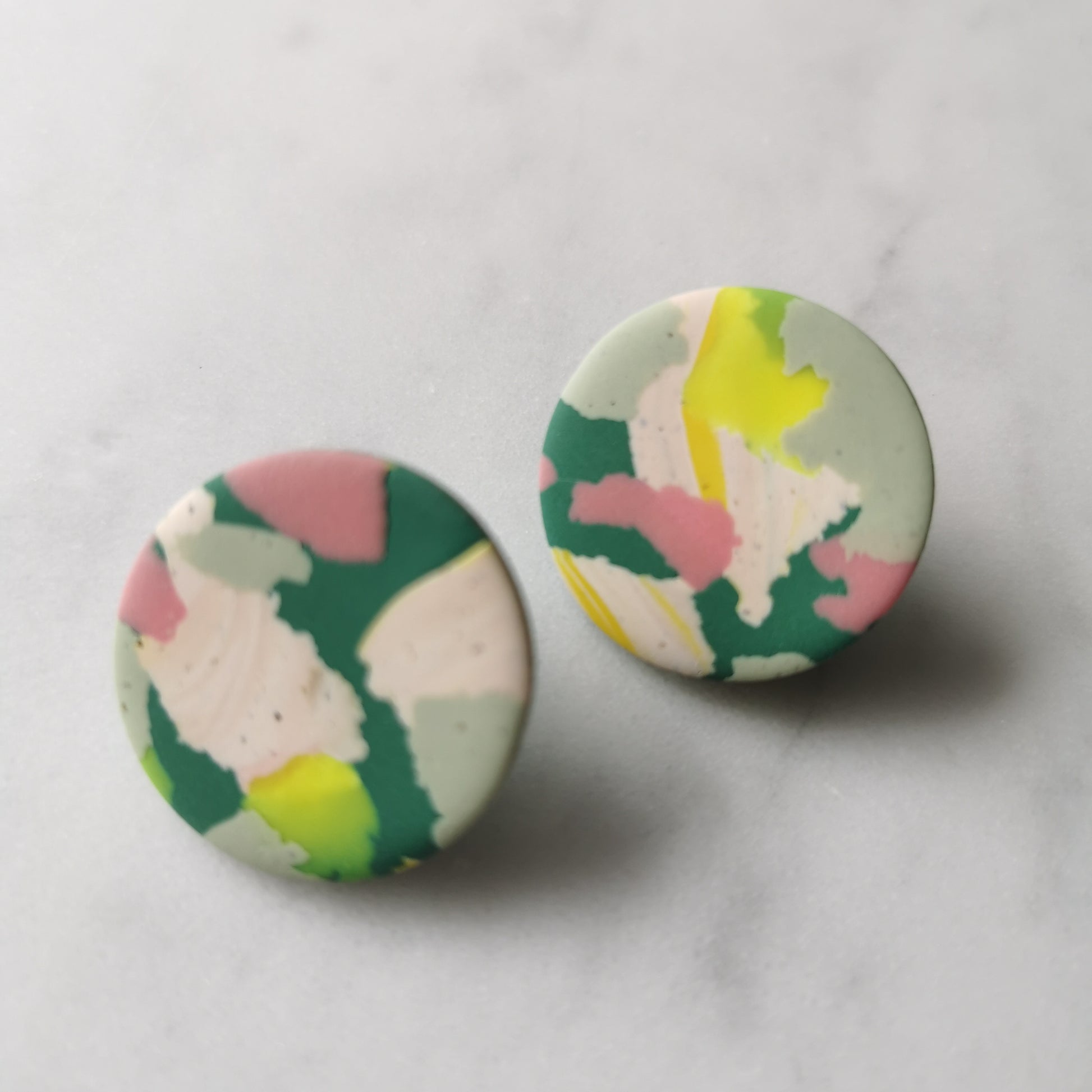 De zachtste tinten van geel,roze en groen voor deze terrazzo studjes. Iets kleiner, dus subtiel. Allemaal uniek in kleur.