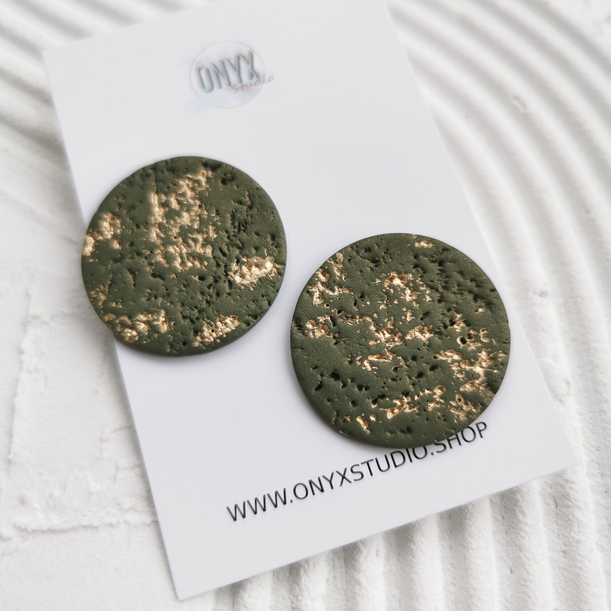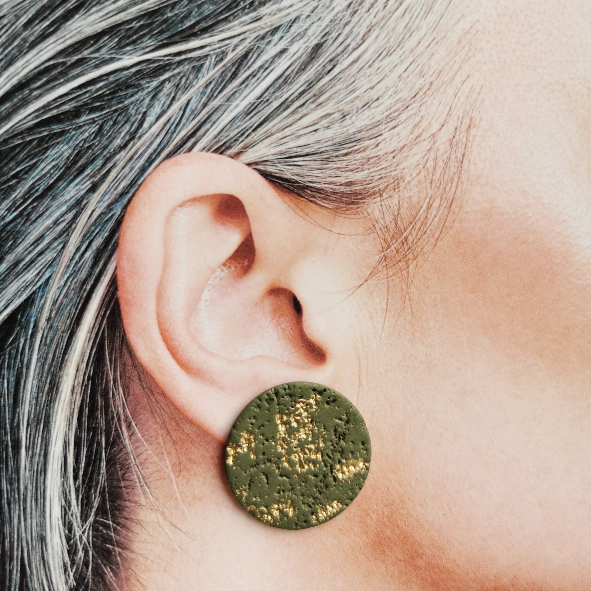 De mooiste olijfgroene kleur voor deze maxistud. Een grove textuur met gouden finish maken van deze maxistud de ideale partner voor herfsttypes. Diameter ongeveer 3cm