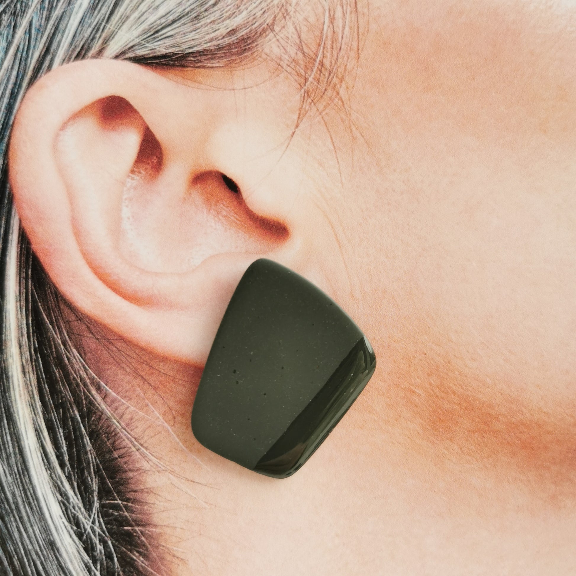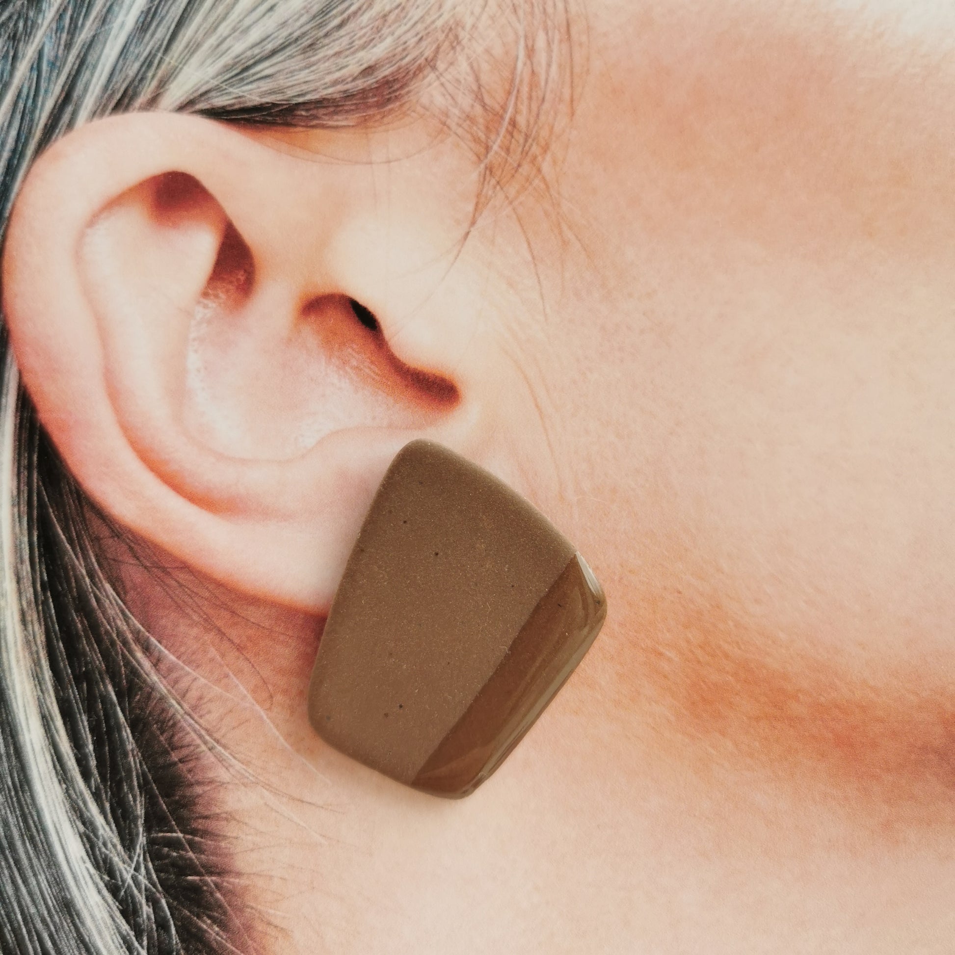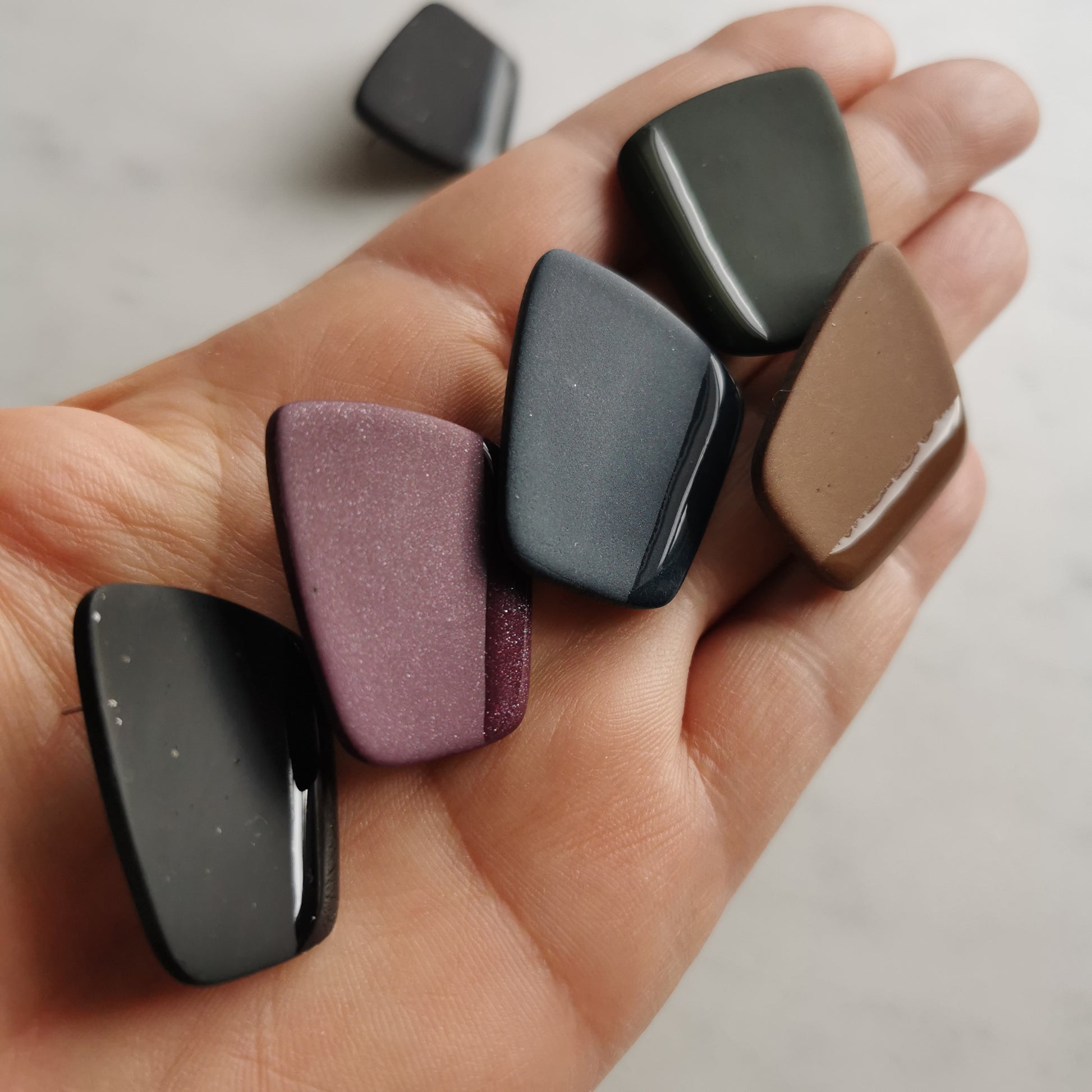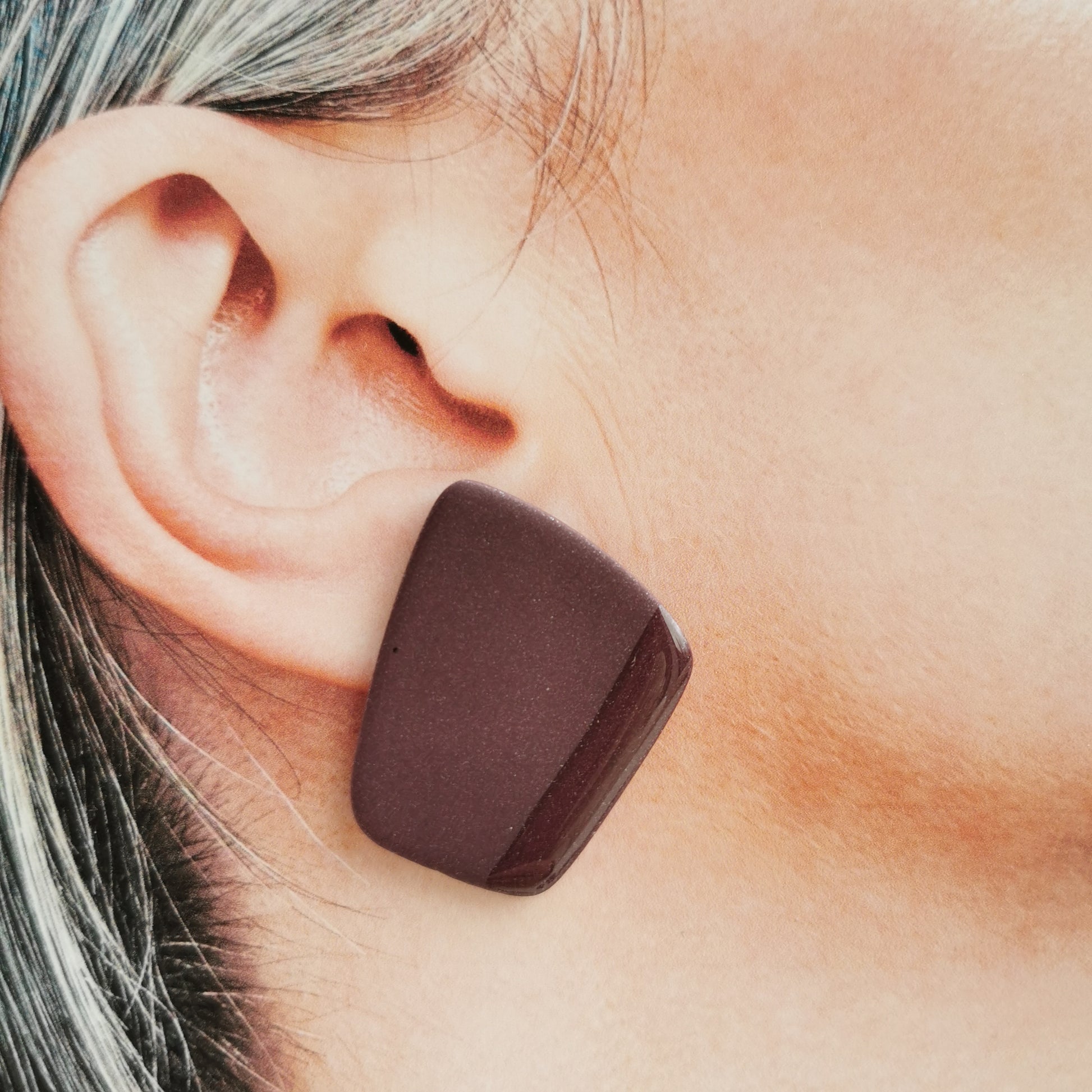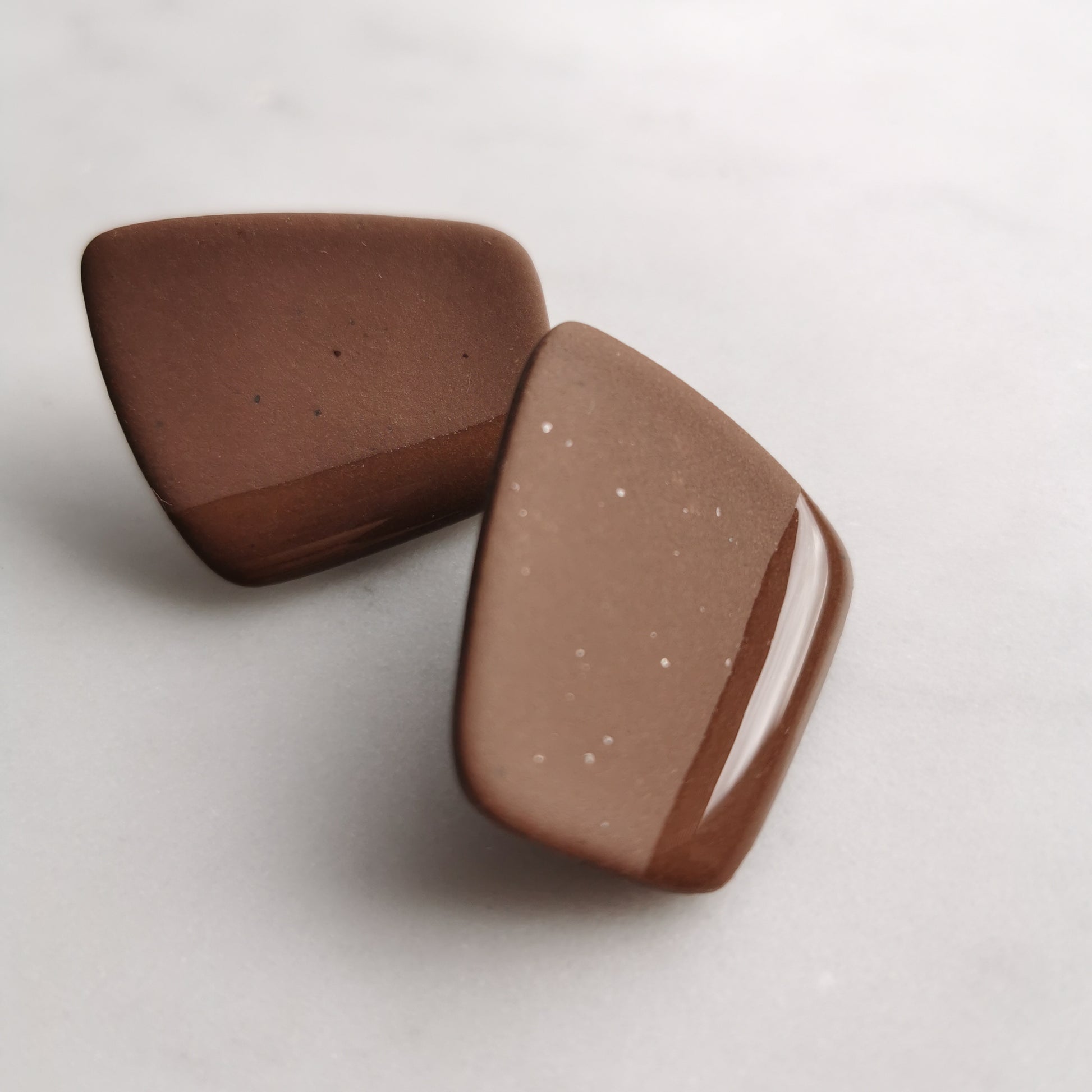 Prachtige tinten voor deze dipped trapezium! De matte finish van de polymeerklei met glanzend accent in epoxy maakt van deze maxistud de ideale aanvulling op jouw garderobe. Afmeting ongeveer 4cm. Stud in stainless steel