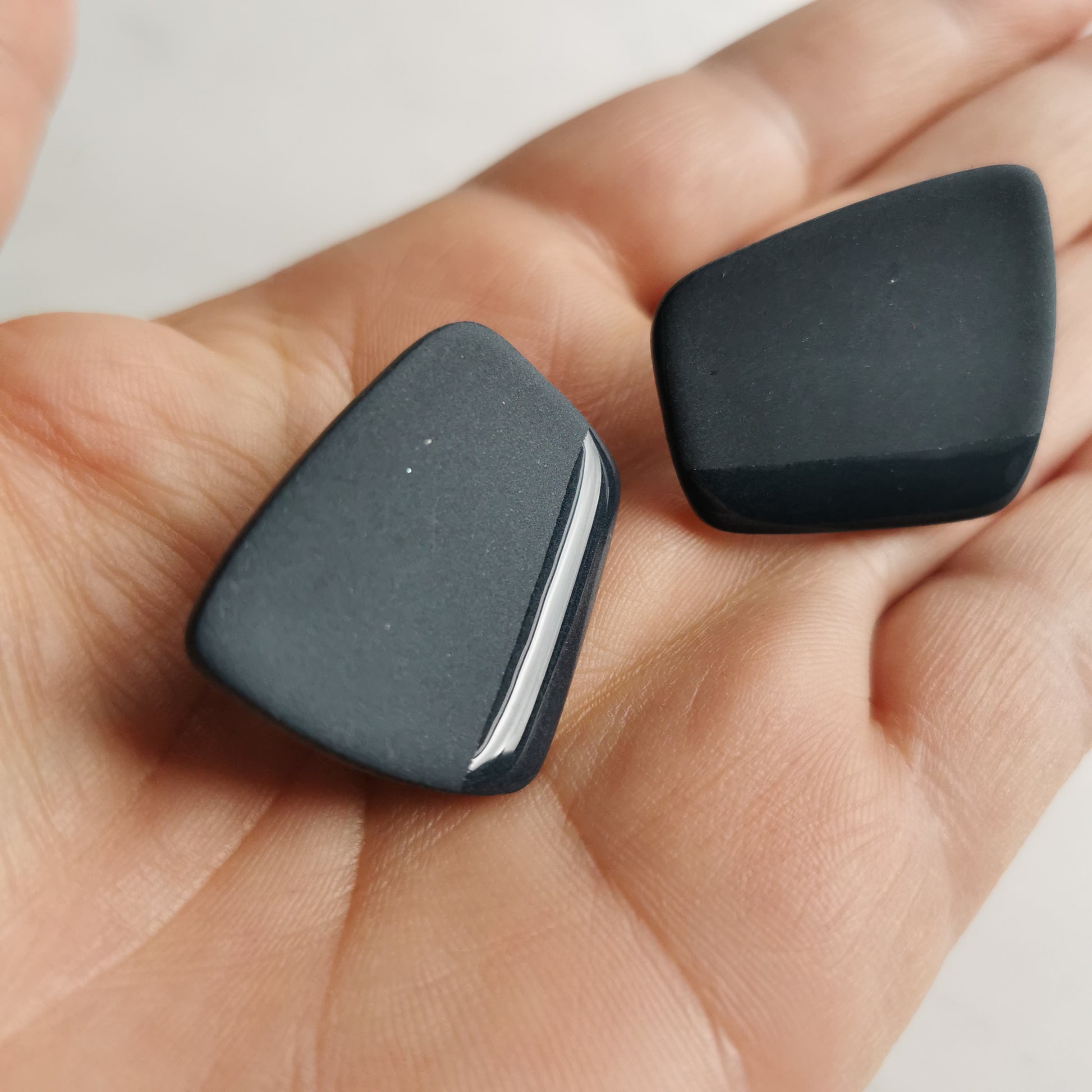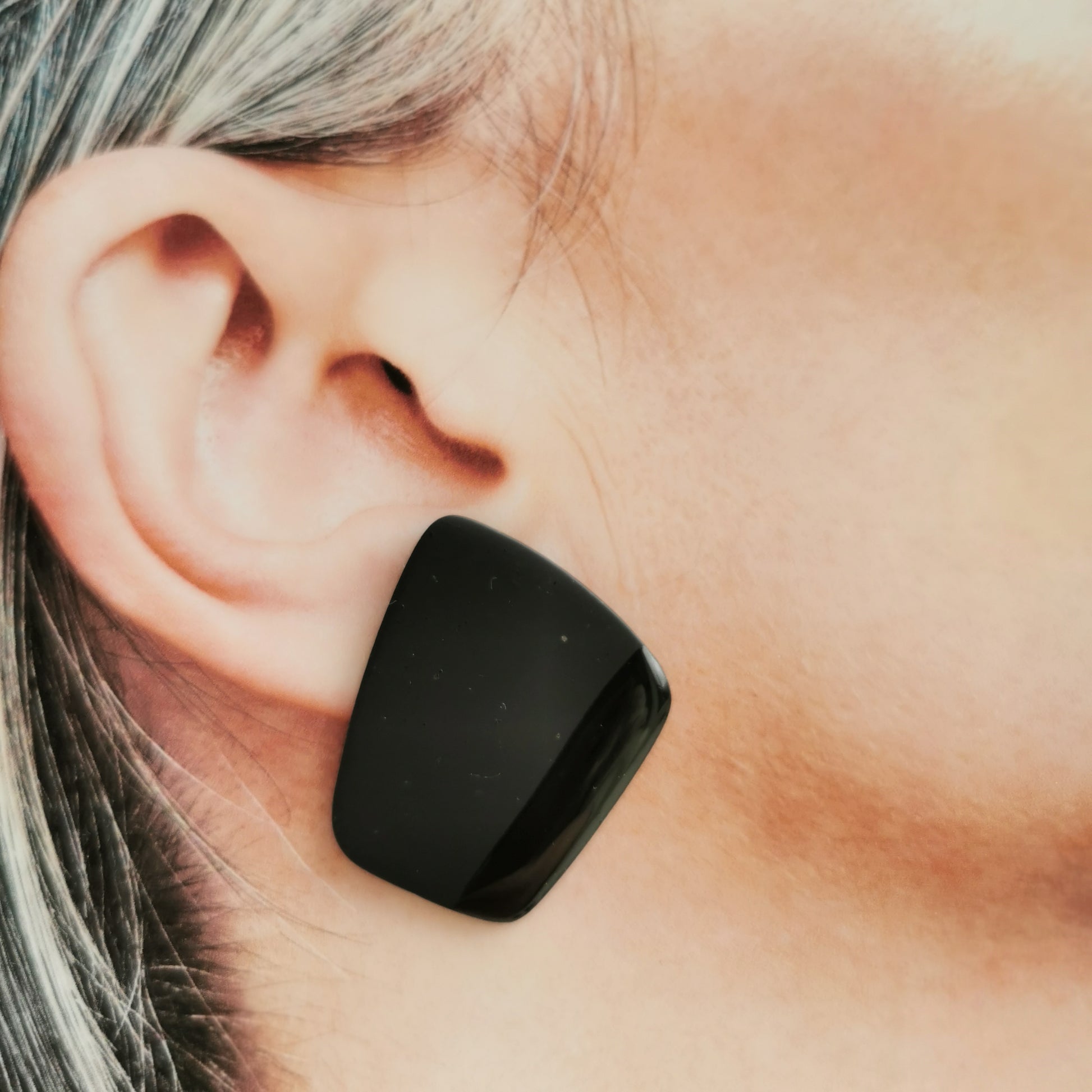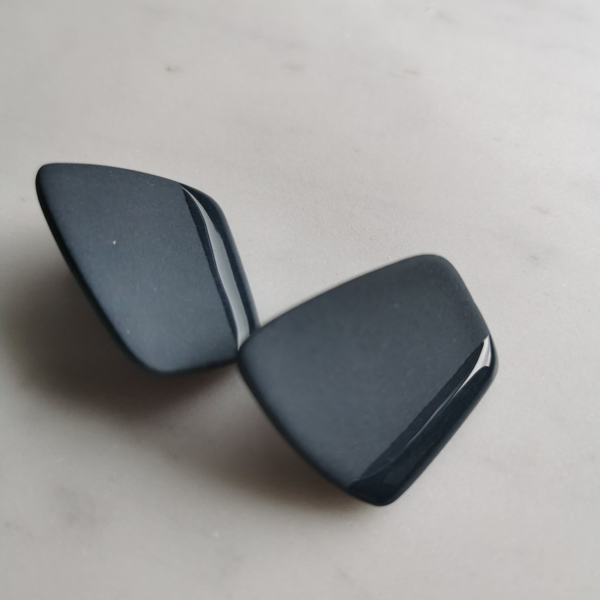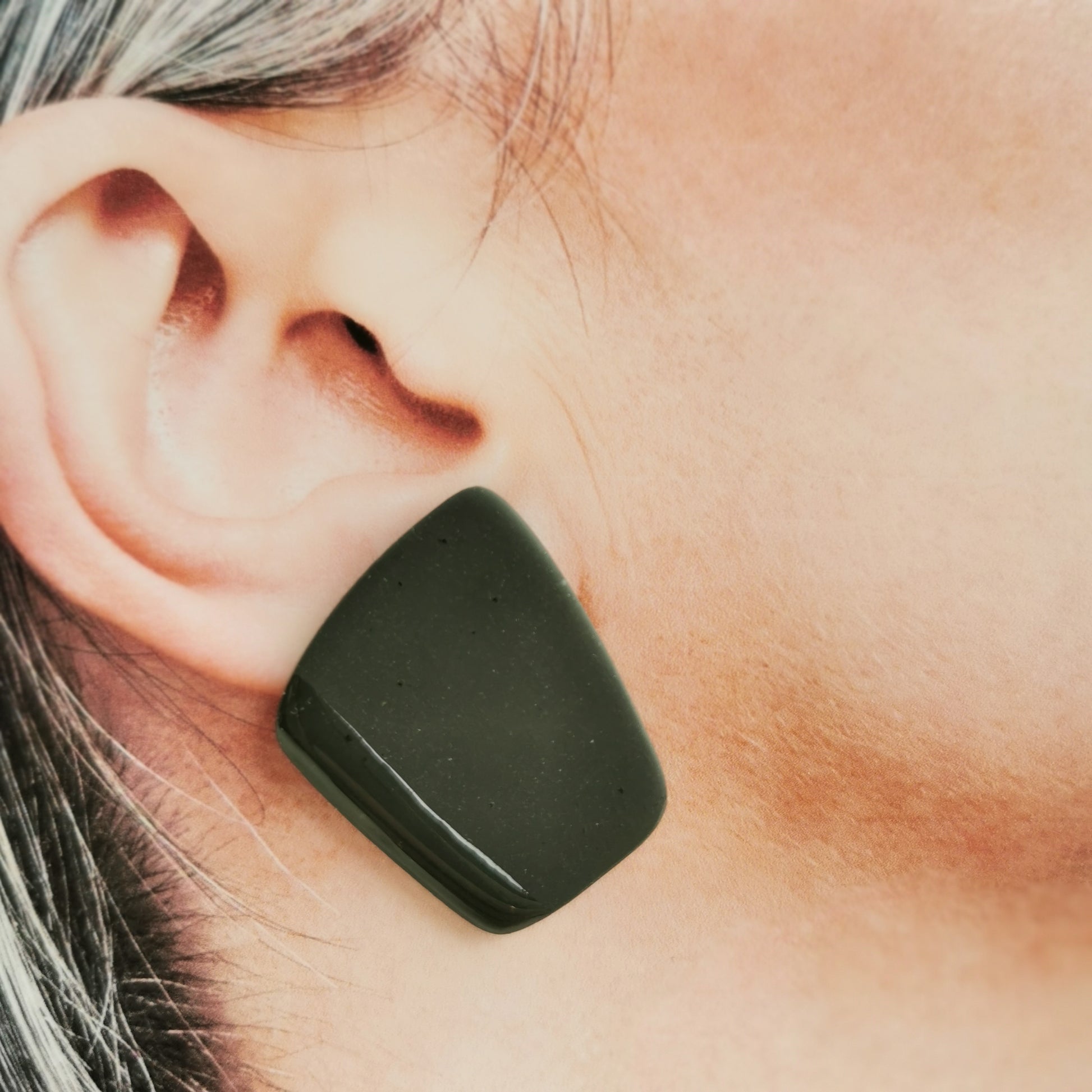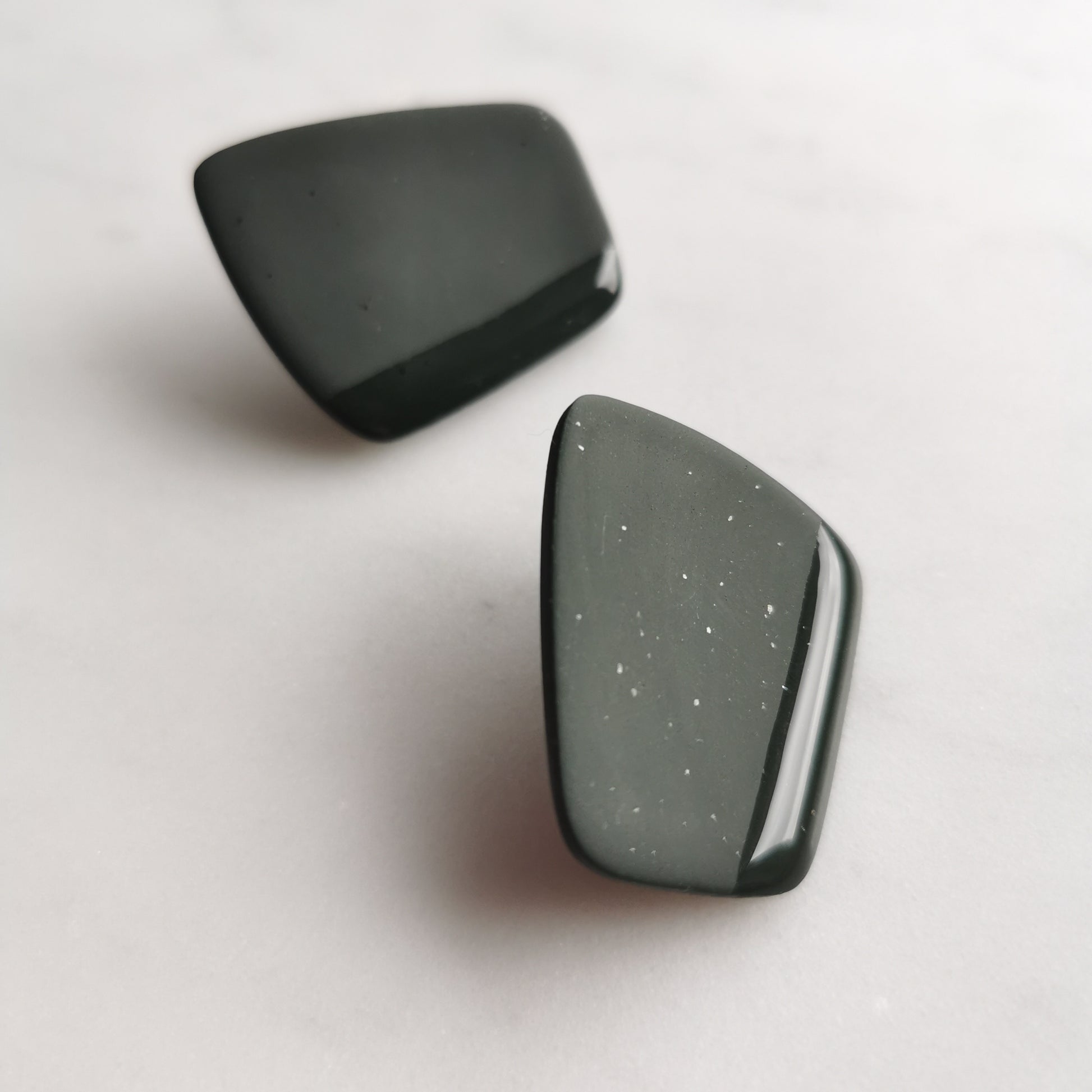 Prachtige tinten voor deze dipped trapezium! De matte finish van de polymeerklei met glanzend accent in epoxy maakt van deze maxistud de ideale aanvulling op jouw garderobe. Afmeting ongeveer 4cm. Stud in stainless steel